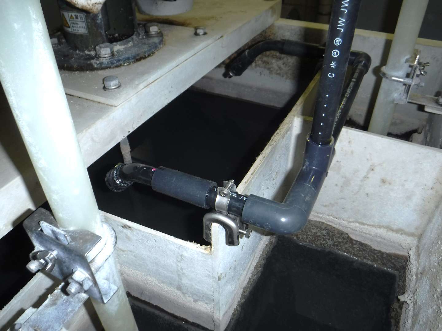 ・中和槽側枝管の先端に消泡ノズル取り付け